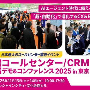 2025年11月13日(木)・14日(金)の2日間、サンシャインシティ・文化会館ビル(東京都豊島区東池袋)で開催される「コールセンター/CRMデモ&コンファレンス 2025 in 東京(第26回)」に登壇・出展いたします。 本イベントは、AIエージェント、生成AI活用の最前線を体感できる、コールセンター/CRM業界最大級のカンファレンスです。今年のテーマは「AIエージェント」がもたらすコンタクトセンターの変化と進化。基調講演や先進事例セッション、ITソリューションのデモンストレーションなど、充実したプログラムが用意されています。 コンタクトセンターの最新トレンドと実践的なソリューションを一堂に集めた本イベントへ、ぜひご来場ください